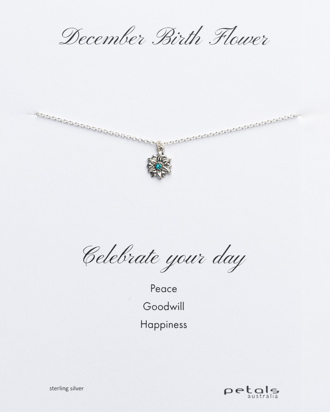 December Birth Flower Necklace in Silver