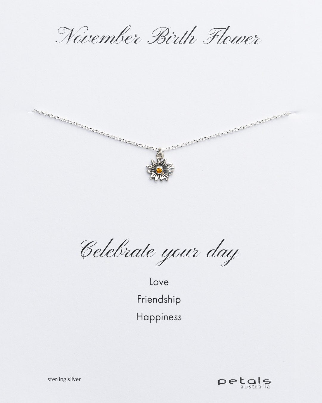 November Birth Flower Necklace in Silver