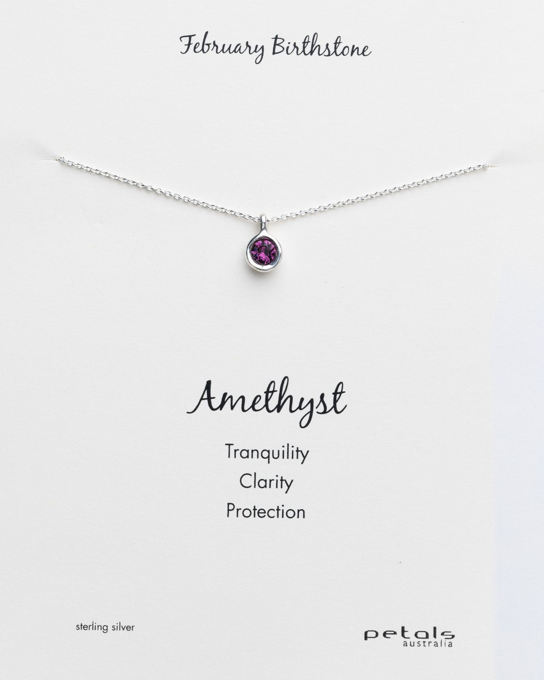 February Amethyst Stone Necklace in Silver
